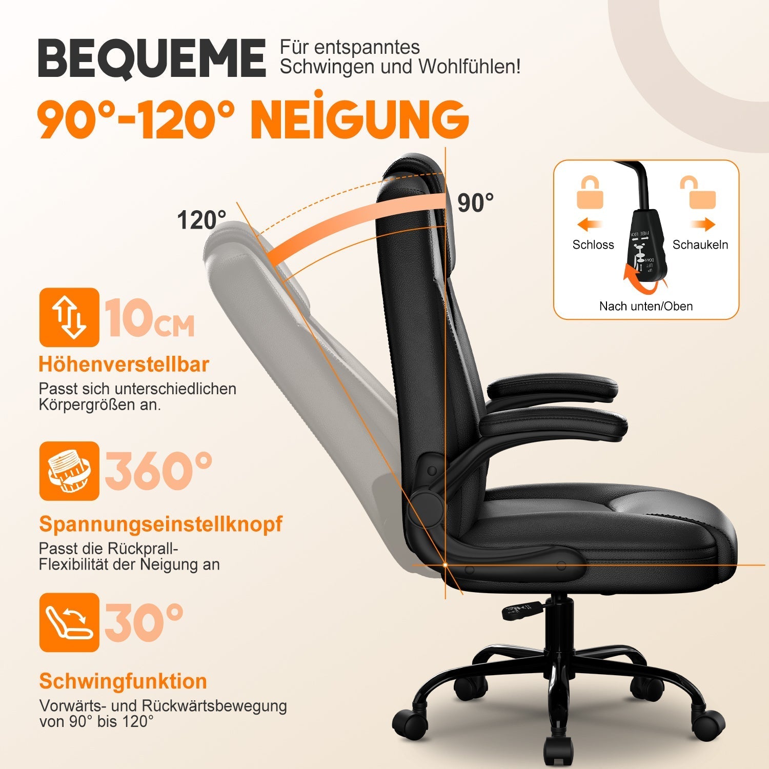 Der Stuhl ist individuell anpassbar mit 10 cm höhenverstellbarem Sitz, 90°-Armlehnen und verstellbarer Rückenlehne (90°-120°) für Arbeit & Entspannung. Mit 10 cm höhenverstellbarer Sitzfläche, 90° schwenkbaren Armlehnen in weich gepolstertem Material sowie einer flexiblen Rückenlehne, die von 90° für konzentriertes Arbeiten bis 120° für entspanntes Zurücklehnen einstellt werden kann, passt sich der Stuhl individuell an Ihre Bedürfnisse an.