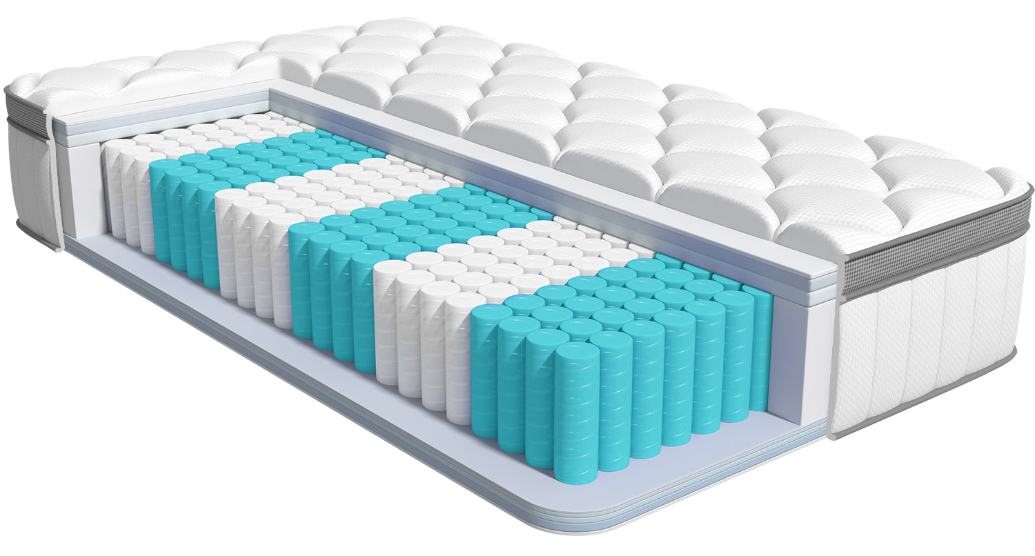 Diese Matratze verwendet eine fortschrittliche Taschenfeder-Technologie, wobei der Durchmesser des Federstahls 2,1 mm beträgt und eine hervorragende Unterstützung und Druckverteilung bietet. Jede Matratze wurde 30.000 Rolltests unterzogen, um eine Qualitätssicherung zu gewährleisten und die Lebensdauer zu verlängern.